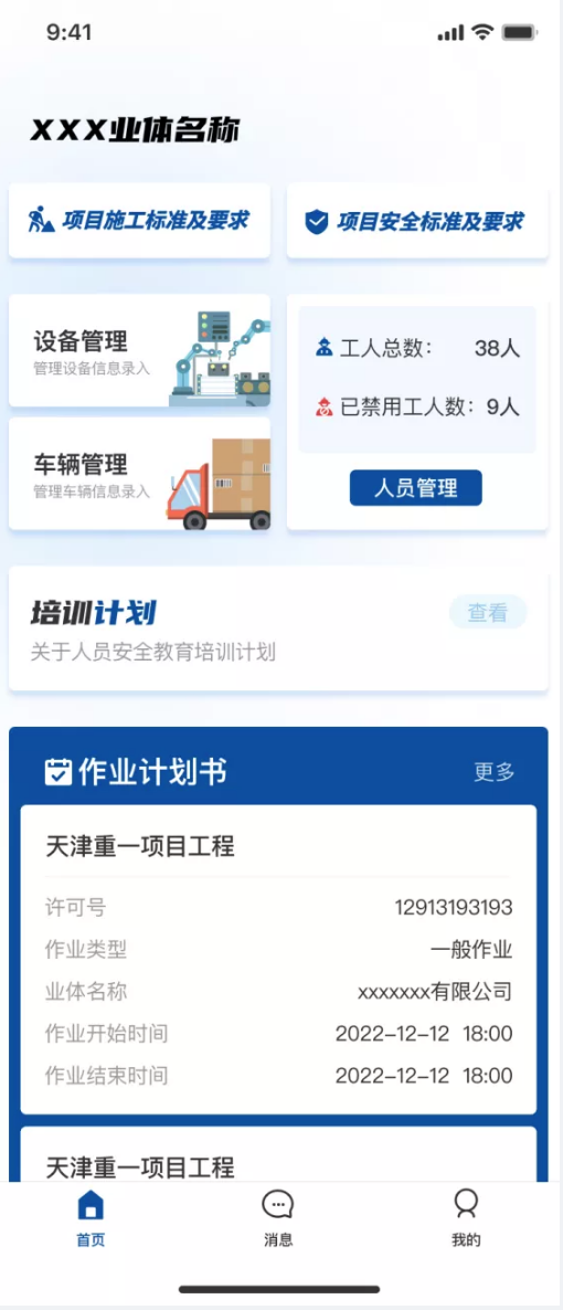 主要功能:業(yè)體管理,人員分析,人員出入管理,培訓管理,車輛管理,安全施工管理,設備管理。